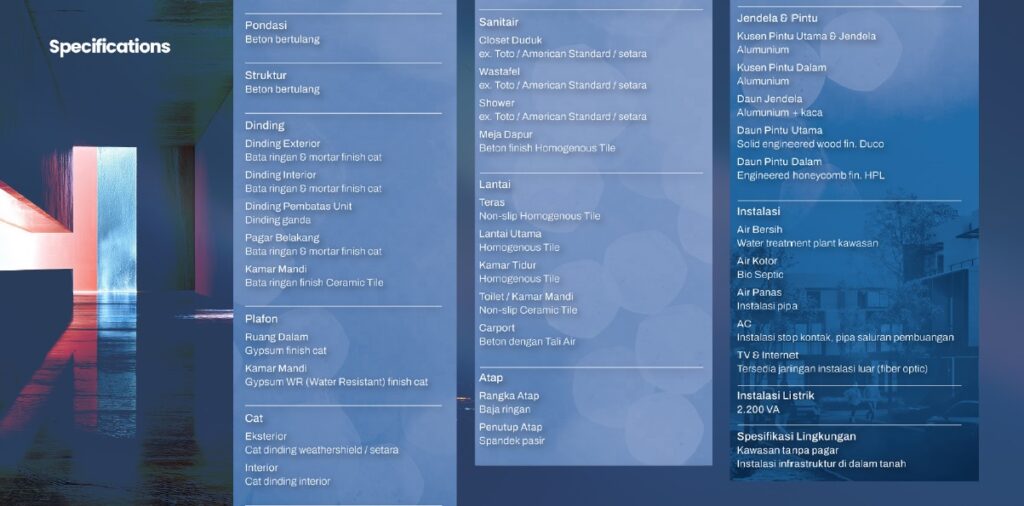 Terdiri dari 1 kamar sampai 4 kamar mulai dari 2 lantai sampai 3 lantai. Lokasi nya ada di Neo dan Hills di kawasan Lippo Cikarang Cosmopolis yang sudah menjadi kota di kabupaten bekasi.